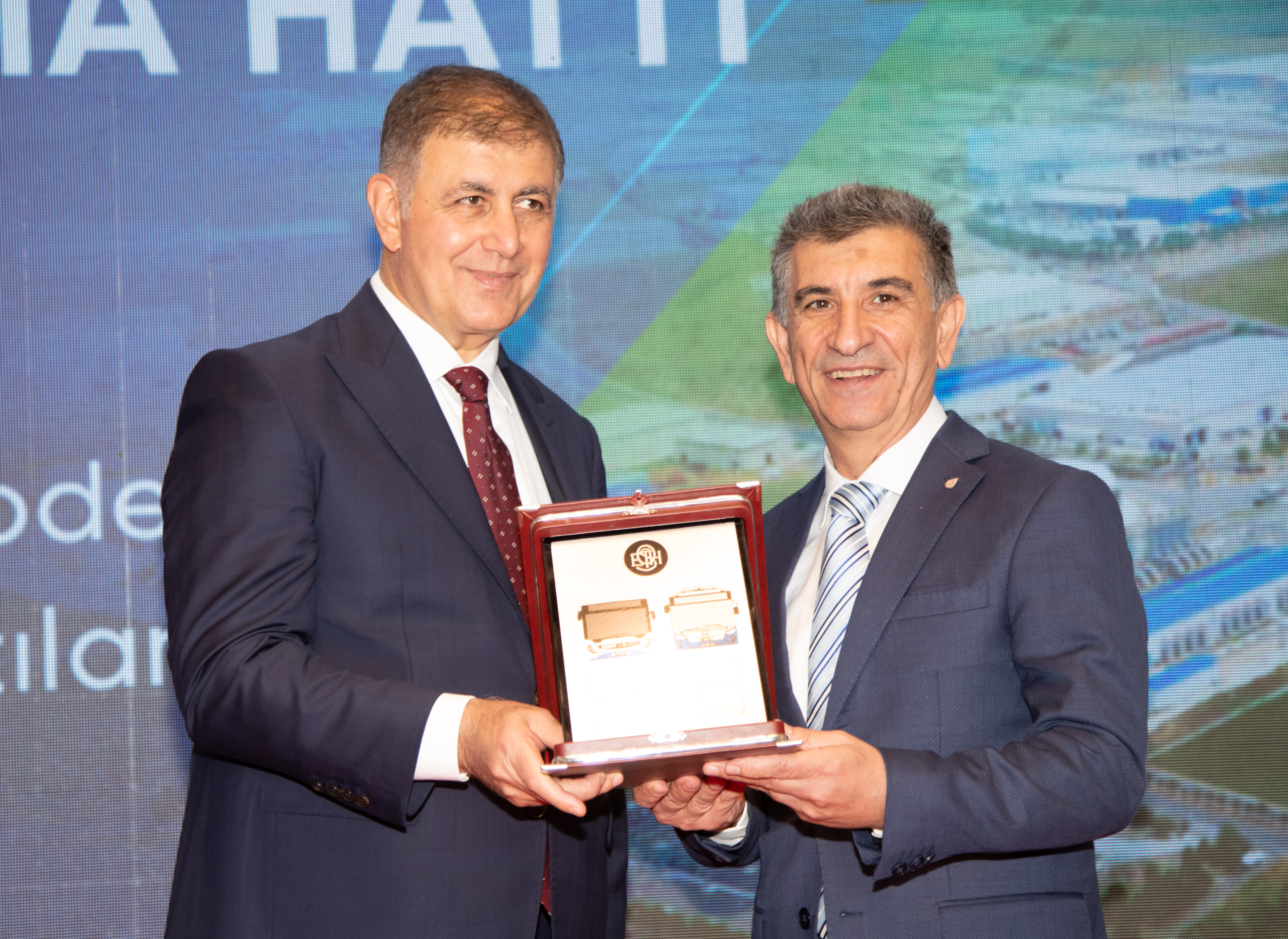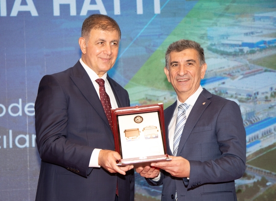 İzmir Büyükşehir Belediye Başkanı Dr. Cemil Tugay, SETTAP projesi kapsamındaki çalışmaları nedeniyle ALOSBİ Yönetim Kurulu Başkanı Haluk Tezcan'a plaketle teşekkür etti. |