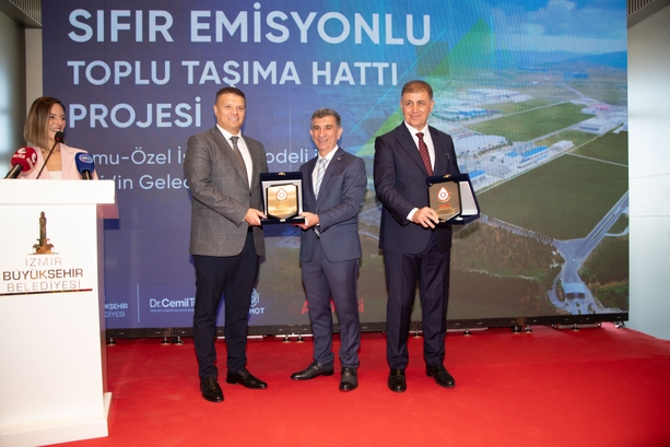 ESHOT Genel Müdürü Övünç Özgen, ALOSBİ Yönetim Kurulu Başkanı Haluk Tezcan, İzmir Büyükşehir Belediye Başkanı Dr. Cemil Tugay |