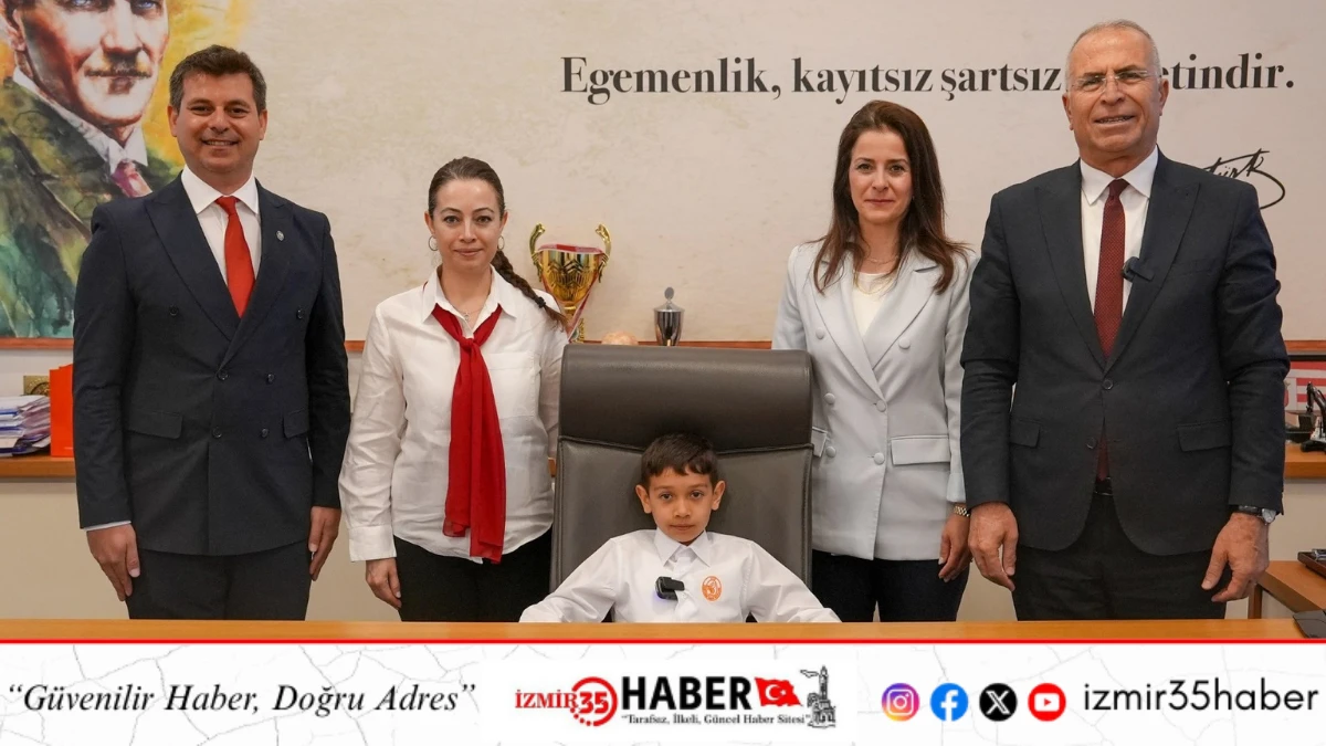 23 Nisan Ulusal Egemenlik ve Çocuk Bayramı’nda Gaziemir Belediye Başkanı Ünal Işık’ın koltuğuna devralan ilkokul ikinci sınıf öğrencisi Ege Ersöz, kuraklık ve çevre sorunlarına dikkat çekti, kütüphane ve spor alanlarının yapılmasına ilişkin projelerini anlattı.