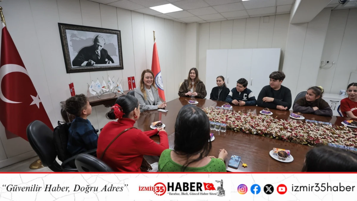 Konak Belediye Başkanı Nilüfer Çınarlı Mutlu, 23 Nisan Ulusal Egemenlik ve Çocuk Bayramı’nda Konak Kent Konseyi Çocuk Meclisi’ni makamında konuk etti. Meclis yönetiminin tam kadro katıldığı ziyarette Konak Kent Konseyi Genel Sekreteri Alper Yağlıdere, Yürütme Kurulu Üyesi Tarkan Eladağ, Kadın Meclisi Başkanı Gülsen Özkan, Mülteci Meclisi Başkanı Mete Hüsünbeyi ve veliler de çocuklara eşlik etti. Keyifli geçen buluşmada Başkan Mutlu’yla birebir sohbet etme fırsatı bulan Çocuk Meclisi üyeleri, kente dair görüşlerini paylaştı. Özellikle Konak Belediyesi’nin son dönemde art arda hizmete aldığı kütüphanelerden övgüyle söz eden çocuklar, “Kütüphaneler çok güzel. Tek otobüsle bir kütüphaneye ulaşabiliyoruz. Çoğunda internet var” sözleriyle öğrencilerin en büyük ihtiyaçlarından biri olan sağlıklı çalışma ve okuma ortamı sağlandığı için teşekkürlerini ilettiler.