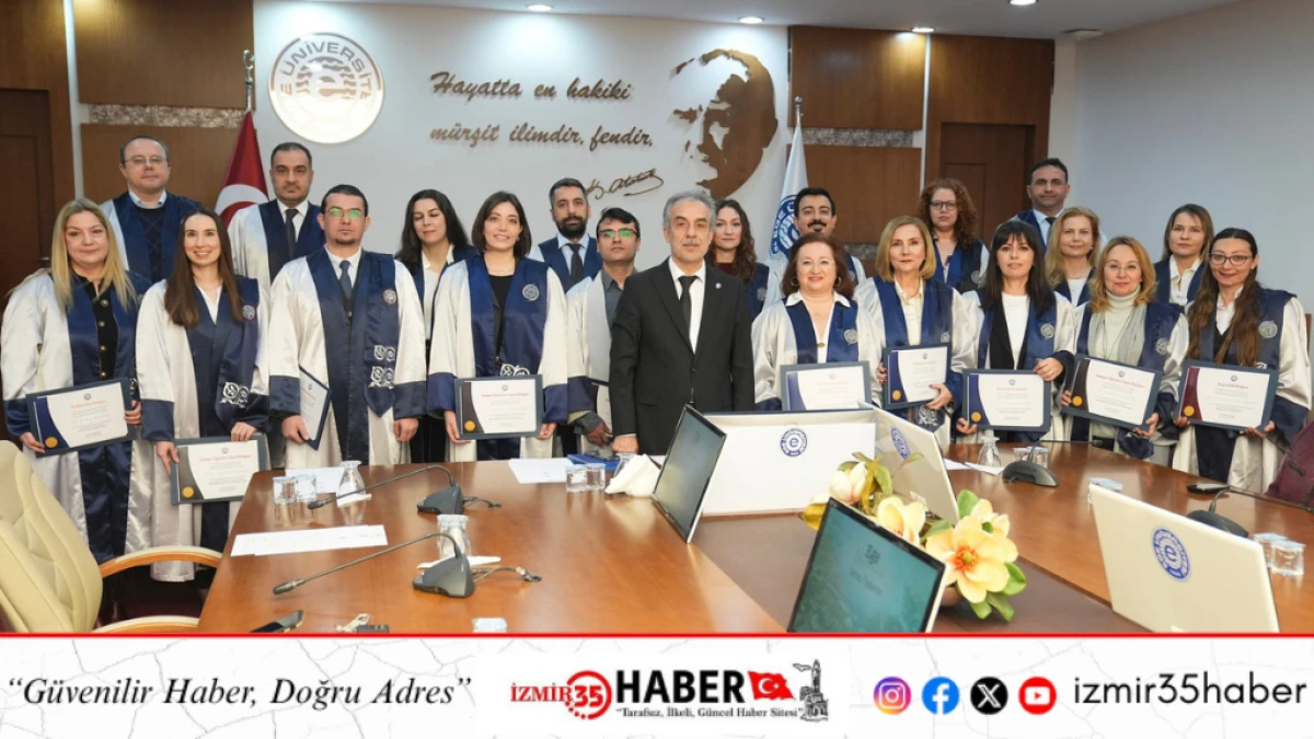 Toplantıda akademik unvan alan tüm öğretim üyelerine belgelerini takdim eden Rektör Prof. Dr. Musa Alcı, “Akademik yükselmeler yalnızca kişisel bir başarı değil, aynı zamanda üniversitemizin bilimsel kapasitesinin bir göstergesidir. Ege Üniversitesi olarak güçlü insan kaynağımız ile yürüteceğimiz bilimsel ve teknolojik çalışmalarla ülkemize değer katmaya devam edeceğiz. Bilimsel birikimleri ile ekosistemimize yaptıkları katkılarla üniversitemizi ileriye taşıyan hocalarımızı tebrik ediyor, akademik yolculuklarında başarılar diliyorum” diye konuştu