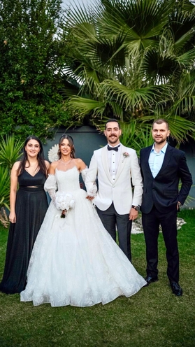 Çiftin nikah şahitleri. İzmir’in başkanları ve siyasetin önde gelen isimleri oldu. Şahitler arasında AK Parti İzmir Milletvekilleri Ceyda Bölünmez Çankırı ve Mahmut Atila Kaya, Eski Ekonomi Bakan Yardımcısı Adnan Yıldırım, Konak Belediye Başkanı Nilüfer Çınarlı Mutlu, İzmir Ticaret Odası Yönetim Kurulu Başkanı Mahmut Özgener, Ege Bölgesi Sanayi Odası Yönetim Kurulu Başkanı Ender Yorgancılar, Ege Bölgesi Sanayi Odası Meclis Başkanı İbrahim Gökçüoğlu, İzmir Ticaret Borsası Yönetim Kurulu Başkanı Işınsu Kestelli, İzmir Ticaret Borsası Meclis Başkanı Ömer Gökhan Tuncer, İzmir Esnaf ve Sanatkârlar Odaları Birliği Yönetim Kurulu Başkanı Yalçın Ata, İMEAK Deniz Ticaret Odası İzmir Başkanı Yusuf Öztürk ve Göztepe Spor Kulübü Onursal Başkanı Mehmet Sepil yer aldı.
