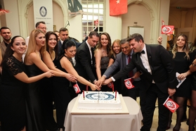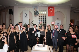 Kutlama pastası, Öğretmen Marşı ve İTÜ Marşı eşliğinde kesildi. |
