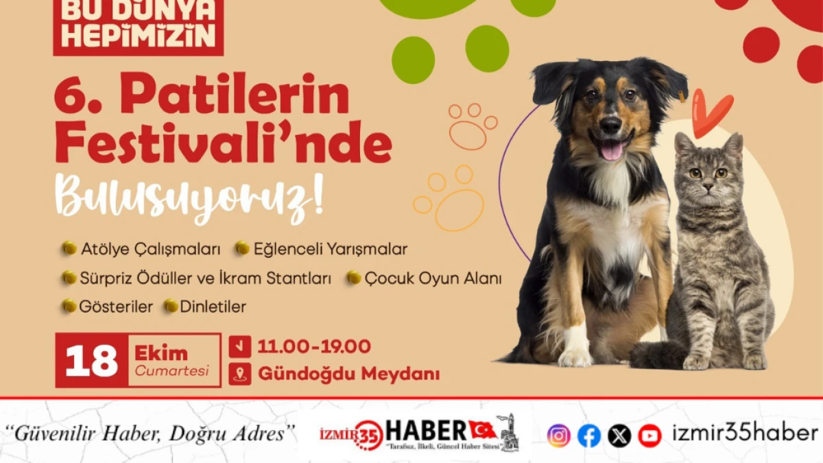 Konak Belediyesi, bu yıl 6’ncısını düzenlediği Patilerin Festivali ile İzmirlileri Gündoğdu Meydanı’nda patili dostlar için buluşturuyor. 18 Ekim’de gerçekleşecek festivalin, her yıl olduğu gibi bu yıl da farkındalık yaratması ve onlarca sahipsiz can dostunu ömürlük yuvalarına kavuşturması bekleniyor